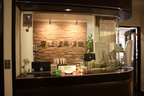 よう、受付周りを茶系に統一しシックな